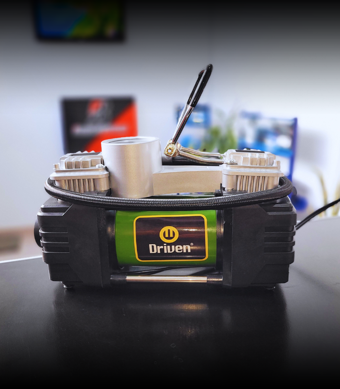 Diseñado para ser compacto, liviano y fácil de transportar, este compresor incluye manómetro incorporado, manguera flexible de alta presión y adaptadores para diferentes válvulas.